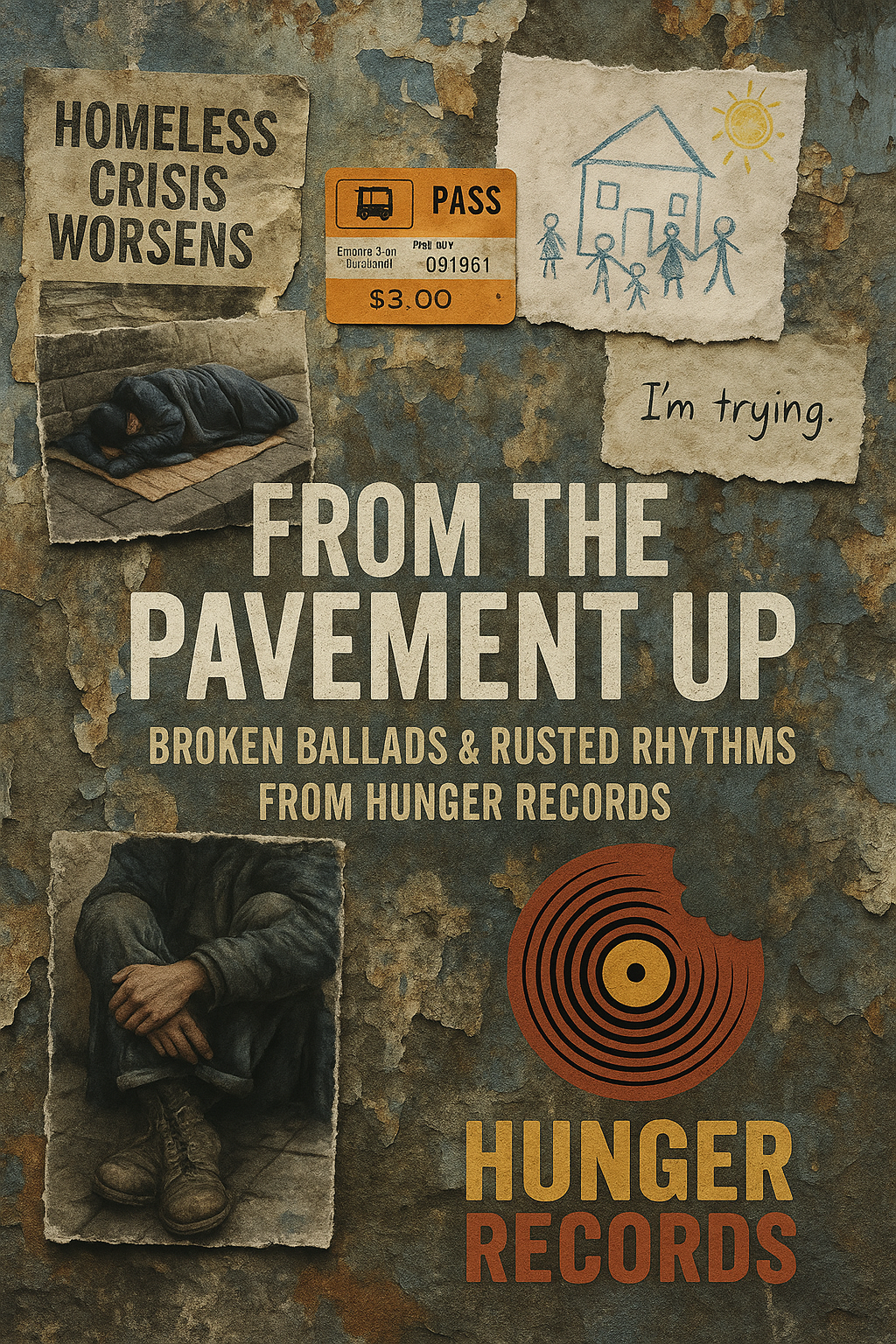 From the Pavement Up is an eleven-track journey through the grit, grace, and glory found on life’s margins. Recorded and released on Hunger Records, this album shines a light on stories too often overlooked—tales of hardship met with fierce resilience, of loneliness answered by small acts of compassion, and of broken hearts uplifted by faith and community. From the brooding funk of the opener to the Celtic-tinged reflections and gospel-laden finales, From the Pavement Up invites listeners to walk alongside its characters, feel their struggles, and share in their triumphs. Track List: 1. Shadows on the Streets 2. Voices on the Edge 3. I Have A Home 4. Letter to Myself 5. One Shirt, One Song 6. From the Pavement Up 7. Man-In-A-Box 8. Mañana es Otro Día 9. Same Flesh 10. Shadows On The Streets (alternate version) 11. Give God A Chance A Hunger Records Release